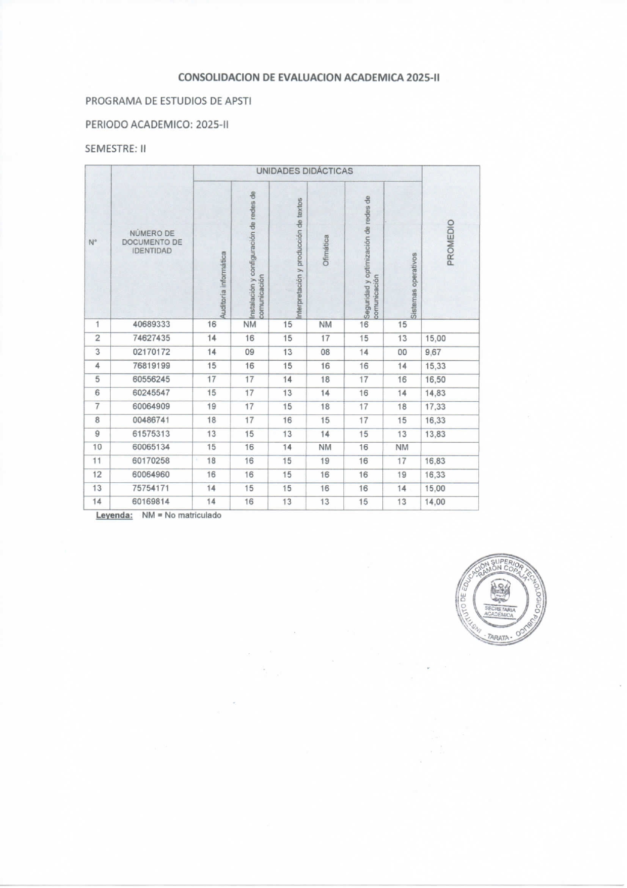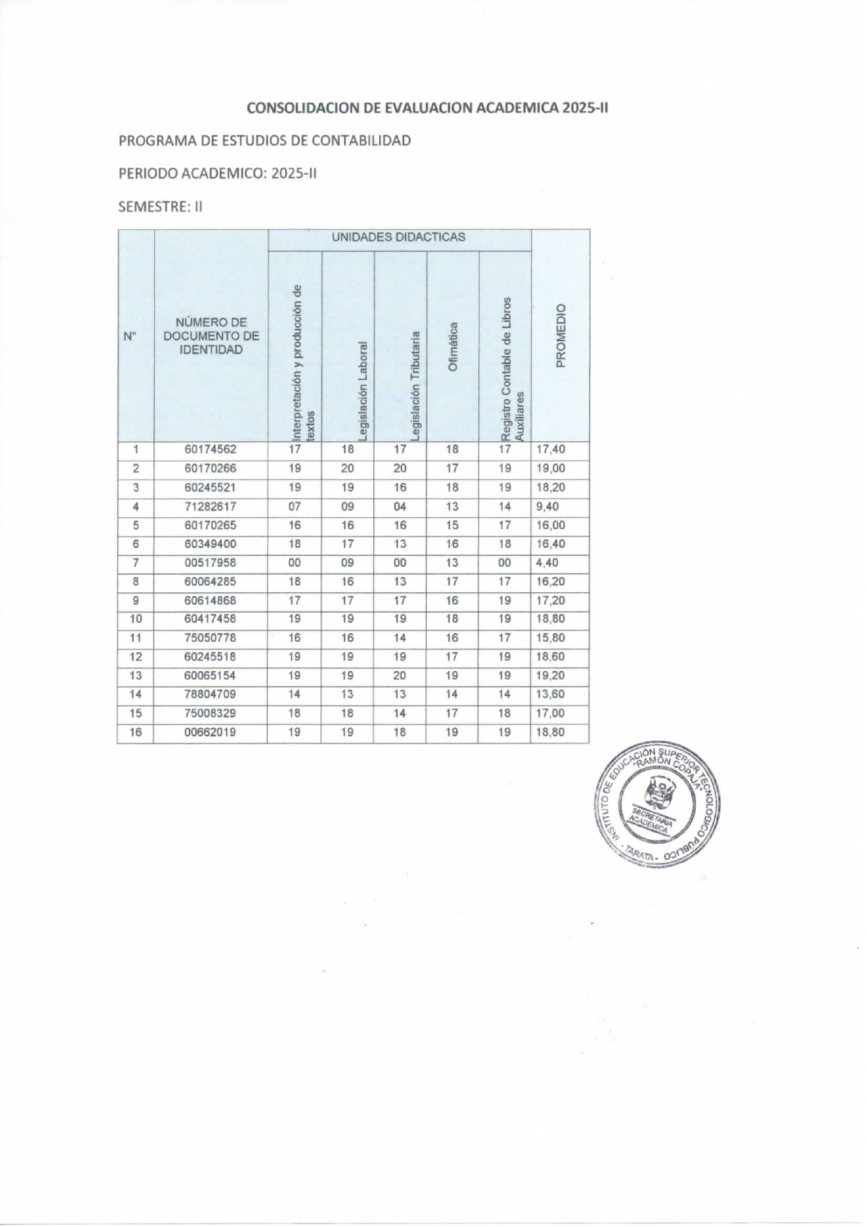 CONSOLIDADO DE EVALUACIÓN 2025 - II