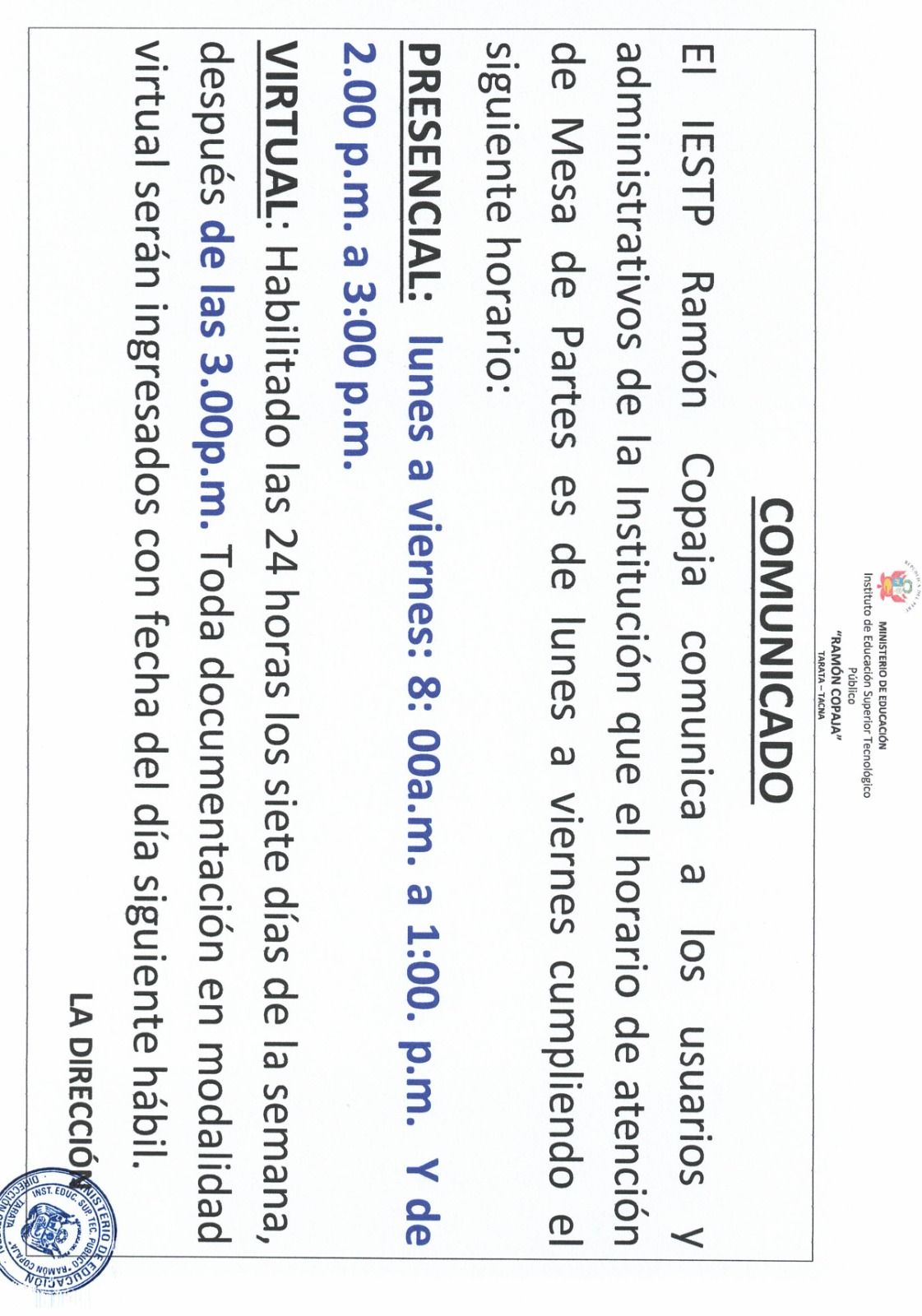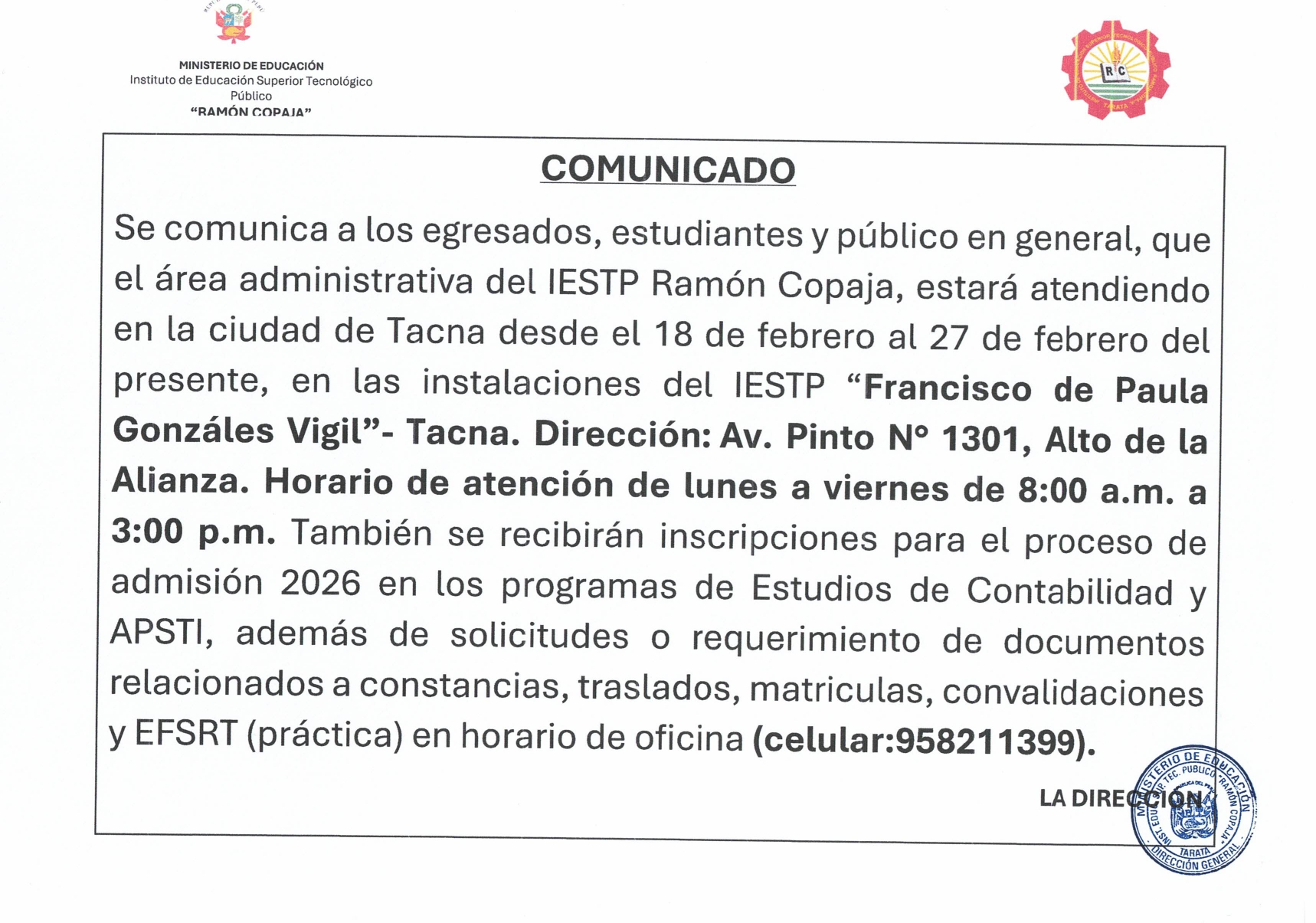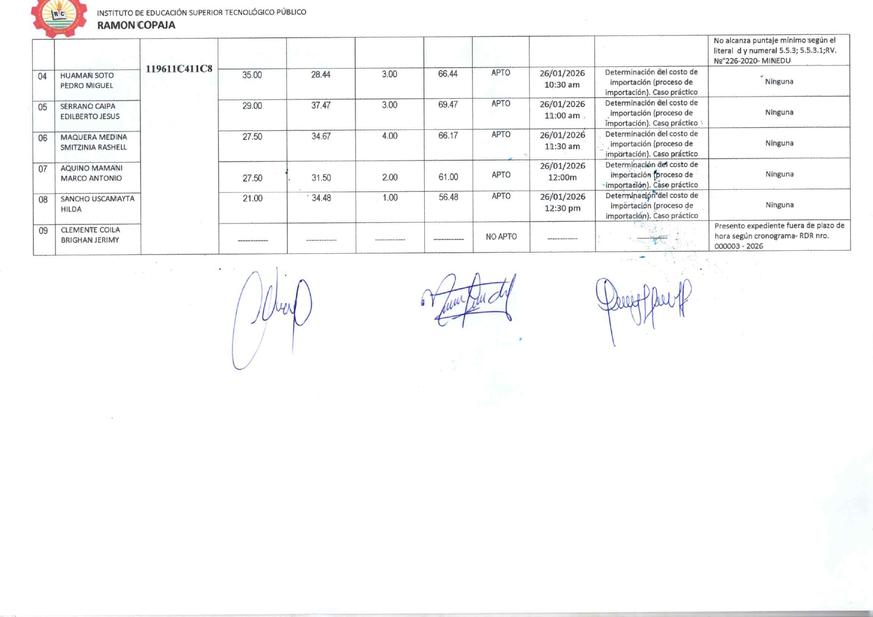 PUBLICACION DE RESULTADOS FINALES - CONCURSO PUBLICO DE MERITOS ABIERTOS DE DOCENTES REGULARES IESTP RAMON COPAJA 2026
