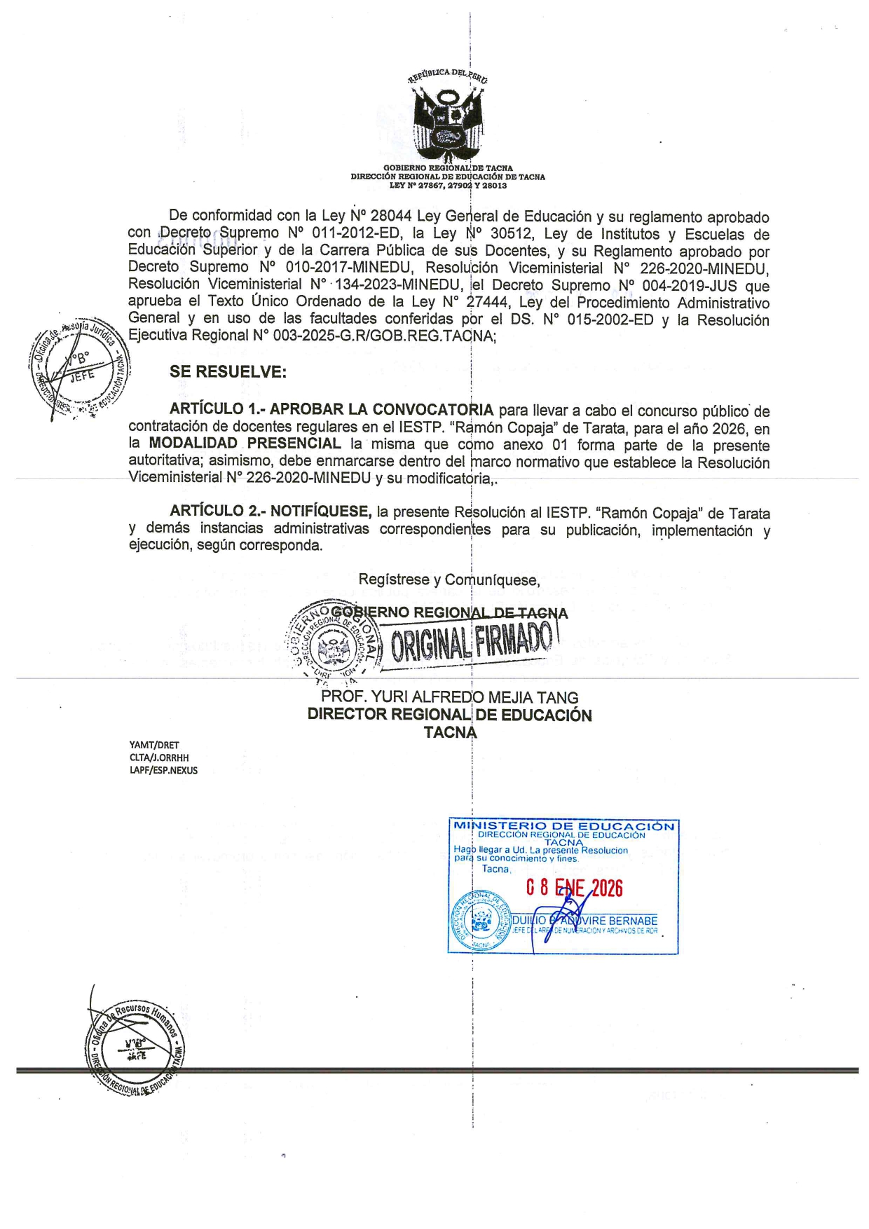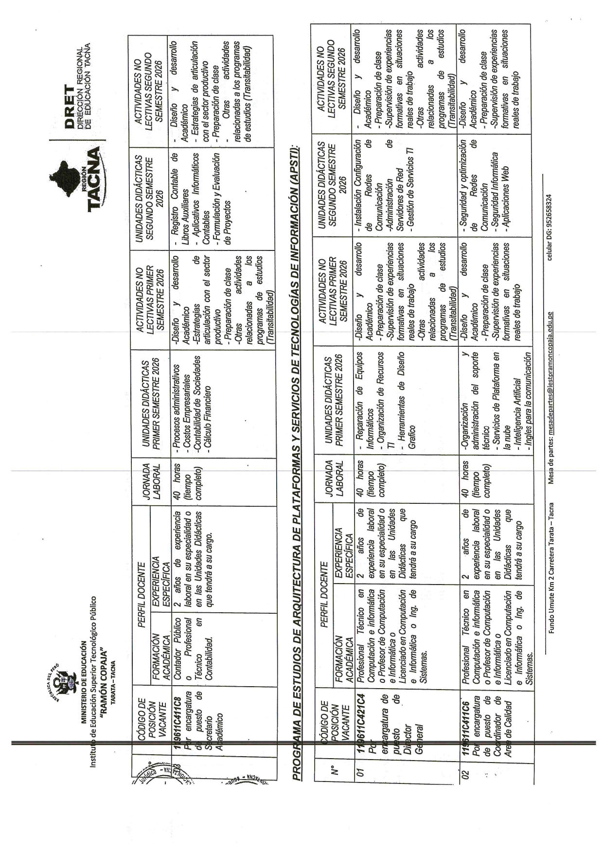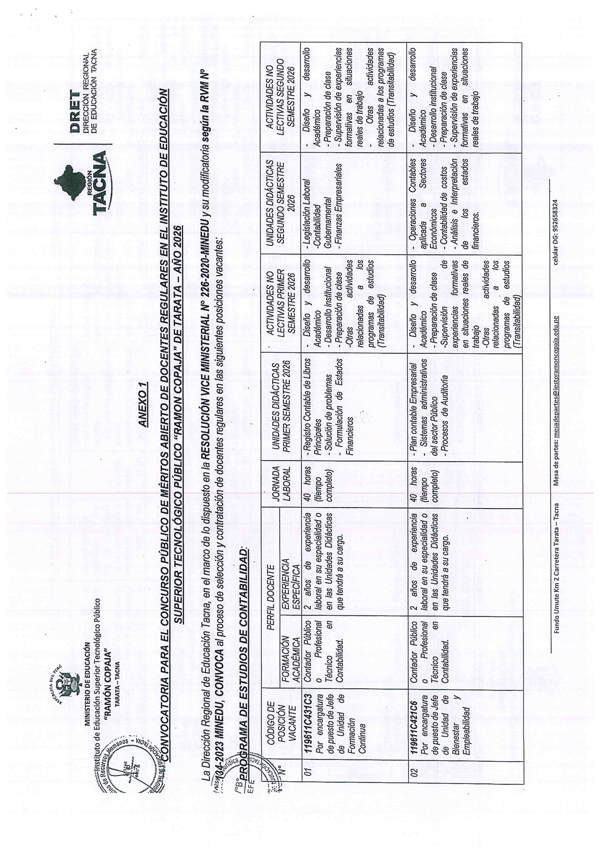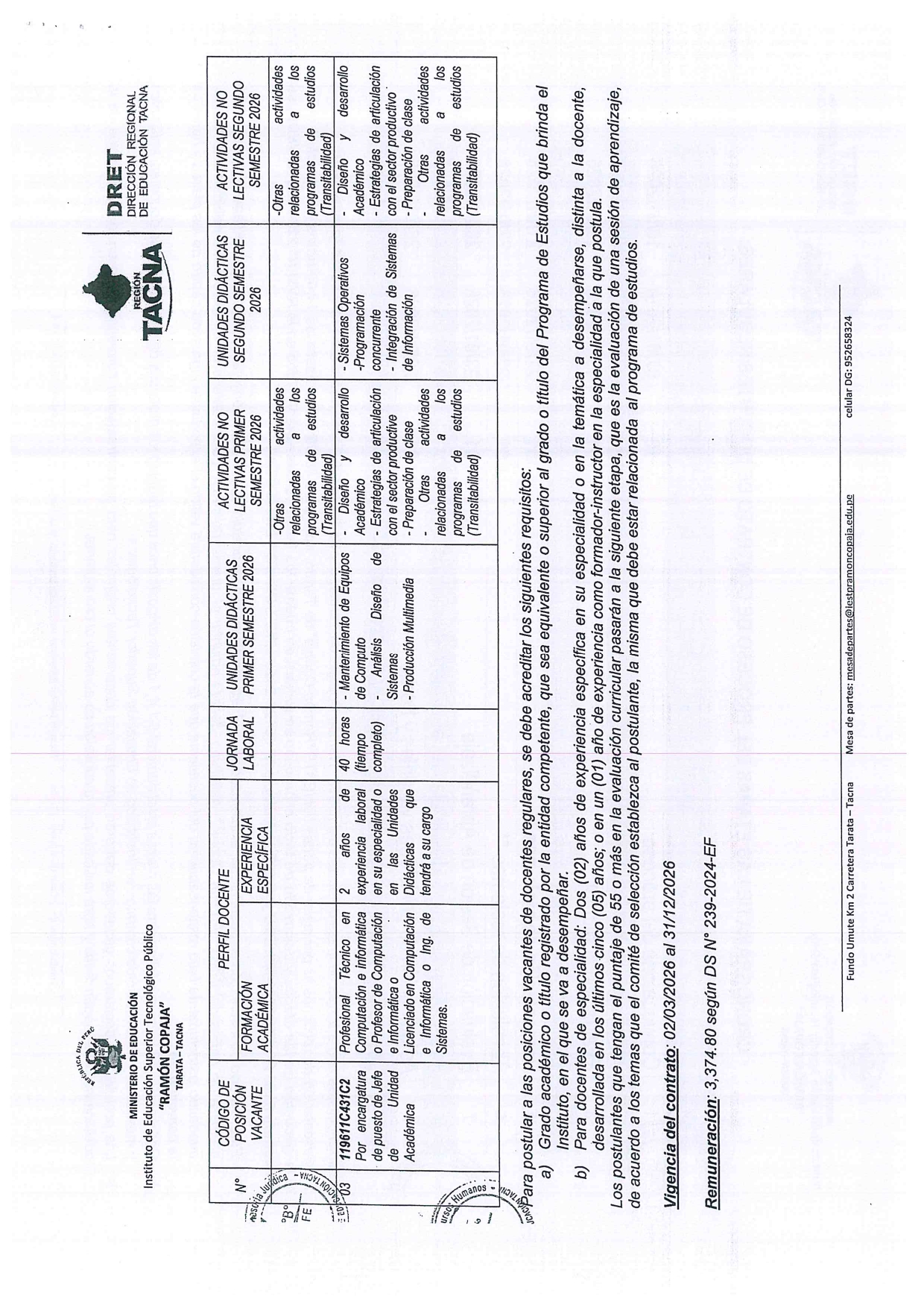 CONCURSO PÚBLICO DE CONTRATACIÓN DE DOCENTES REGULARES EN EL IESTP “RAMÓN COPAJA” - 2026