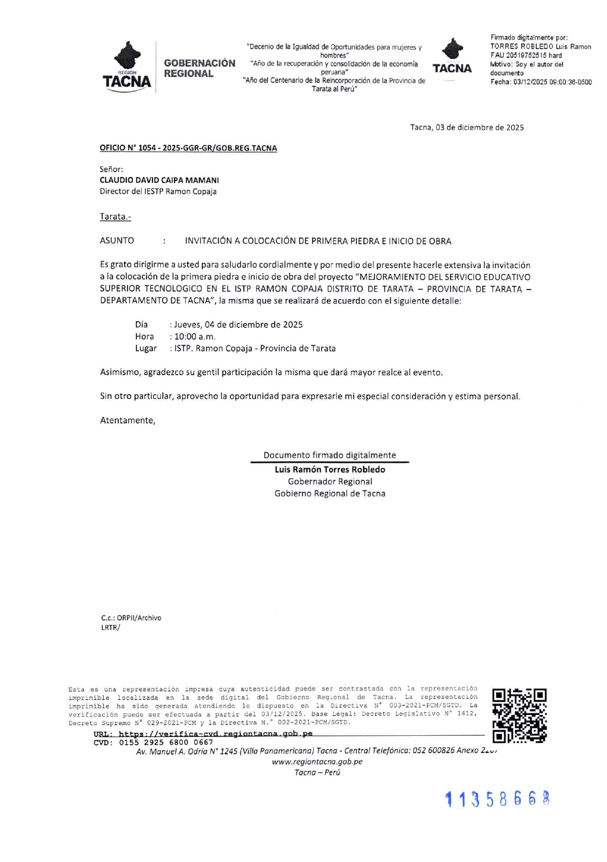 INVITACIÓN A COLOCACIÓN DE PRIMERA PIEDRA E INICIO DE OBRA